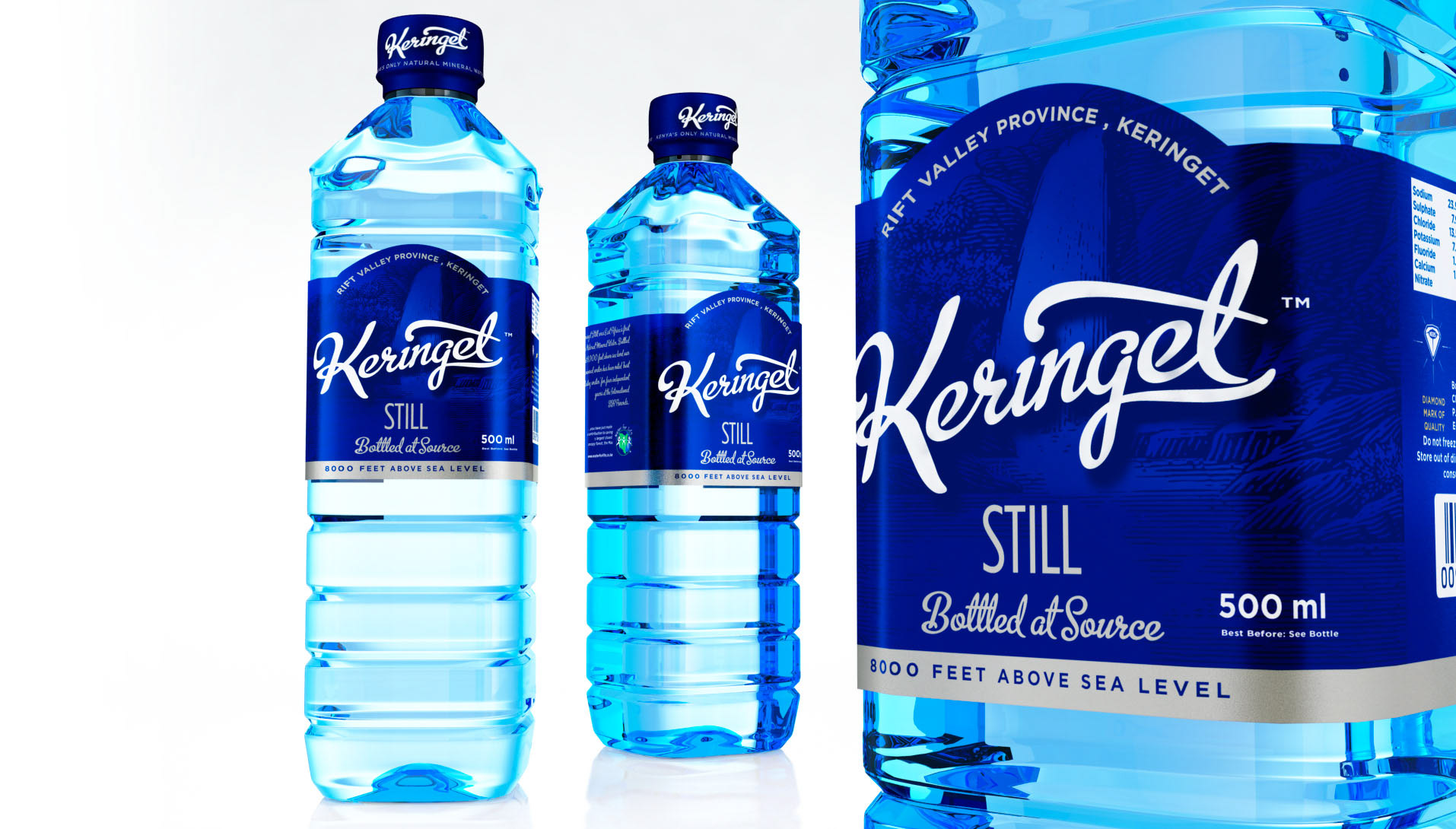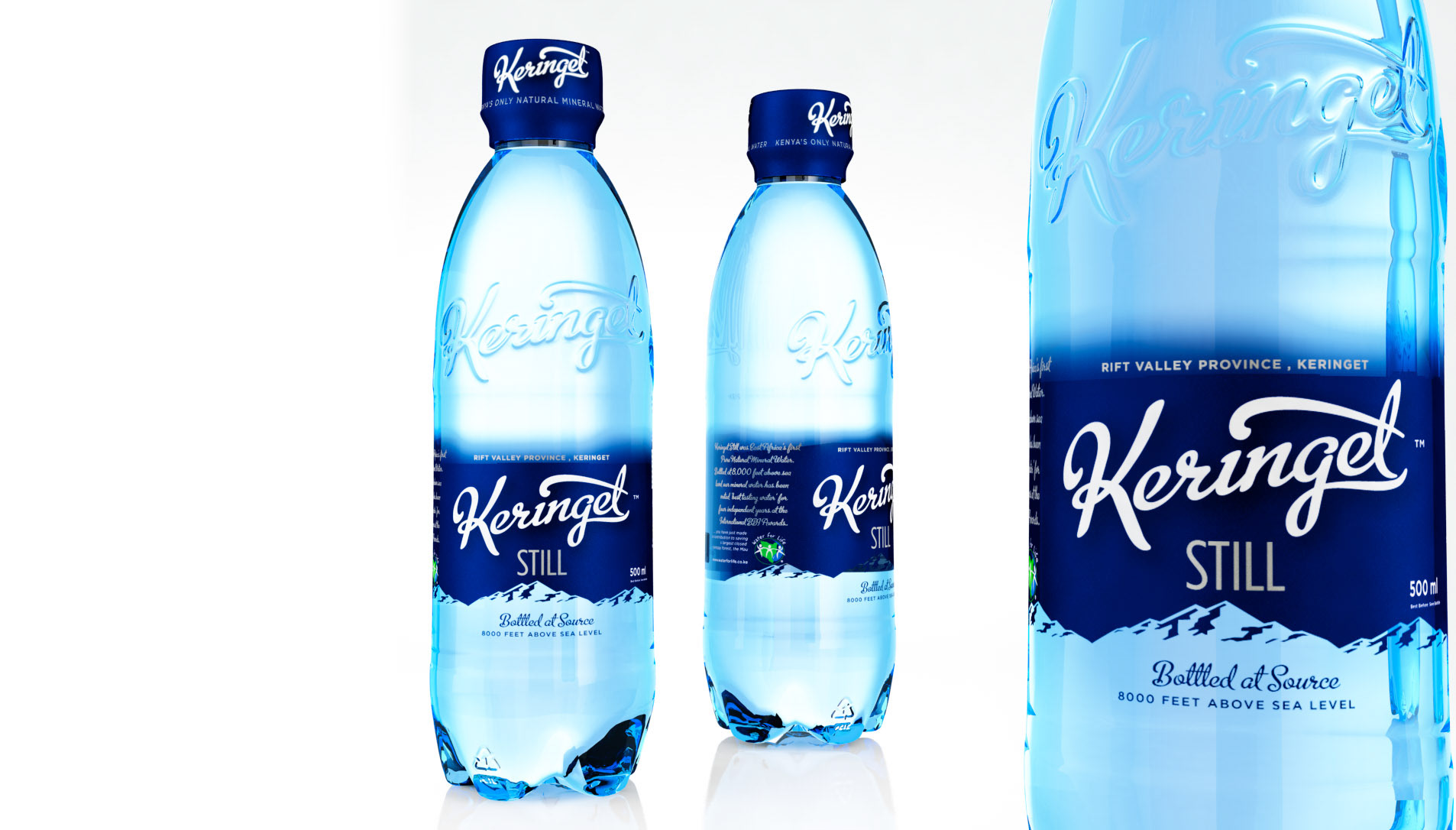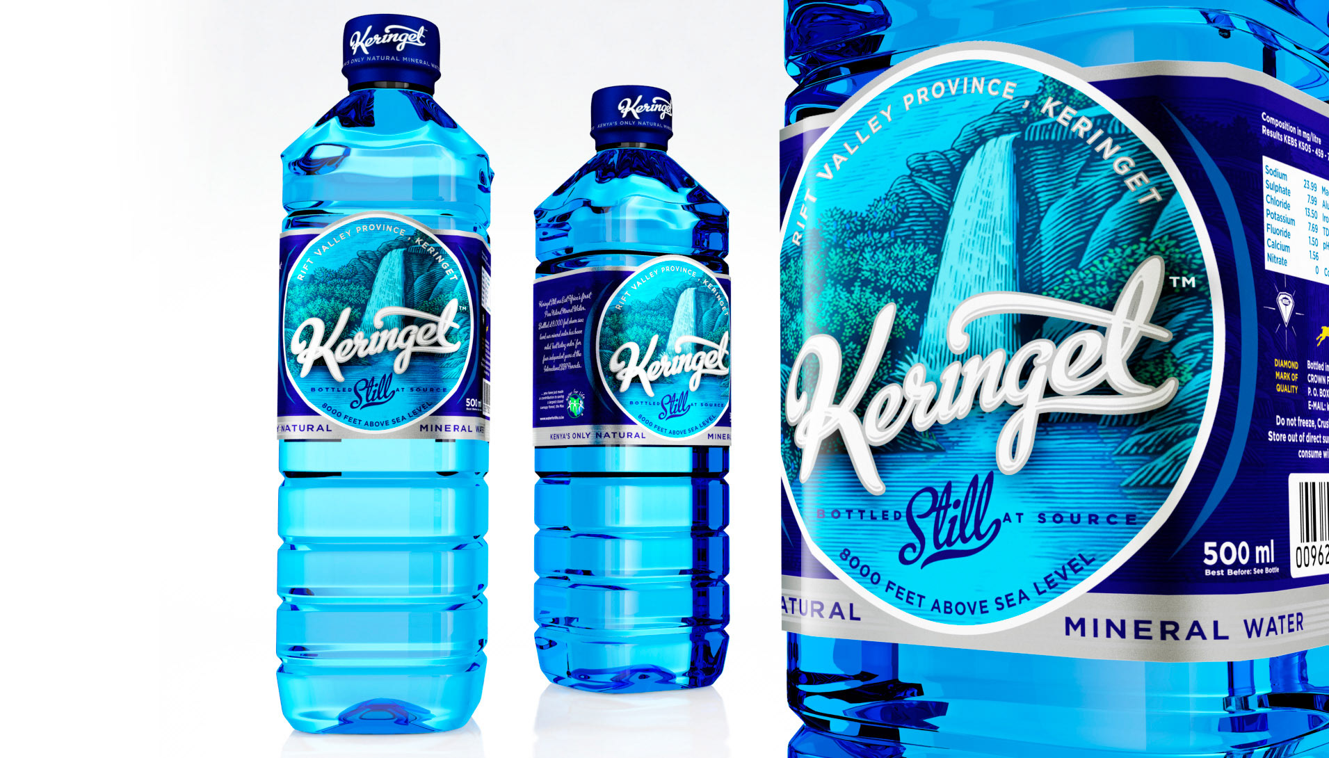 Brand, and bottle design concepts for Kenya's famous 8000 feet above sea level Keringet springs.